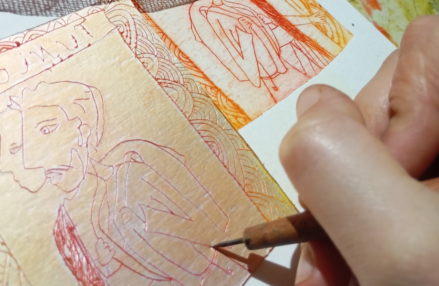 Atelier de gravure sur brique de lait