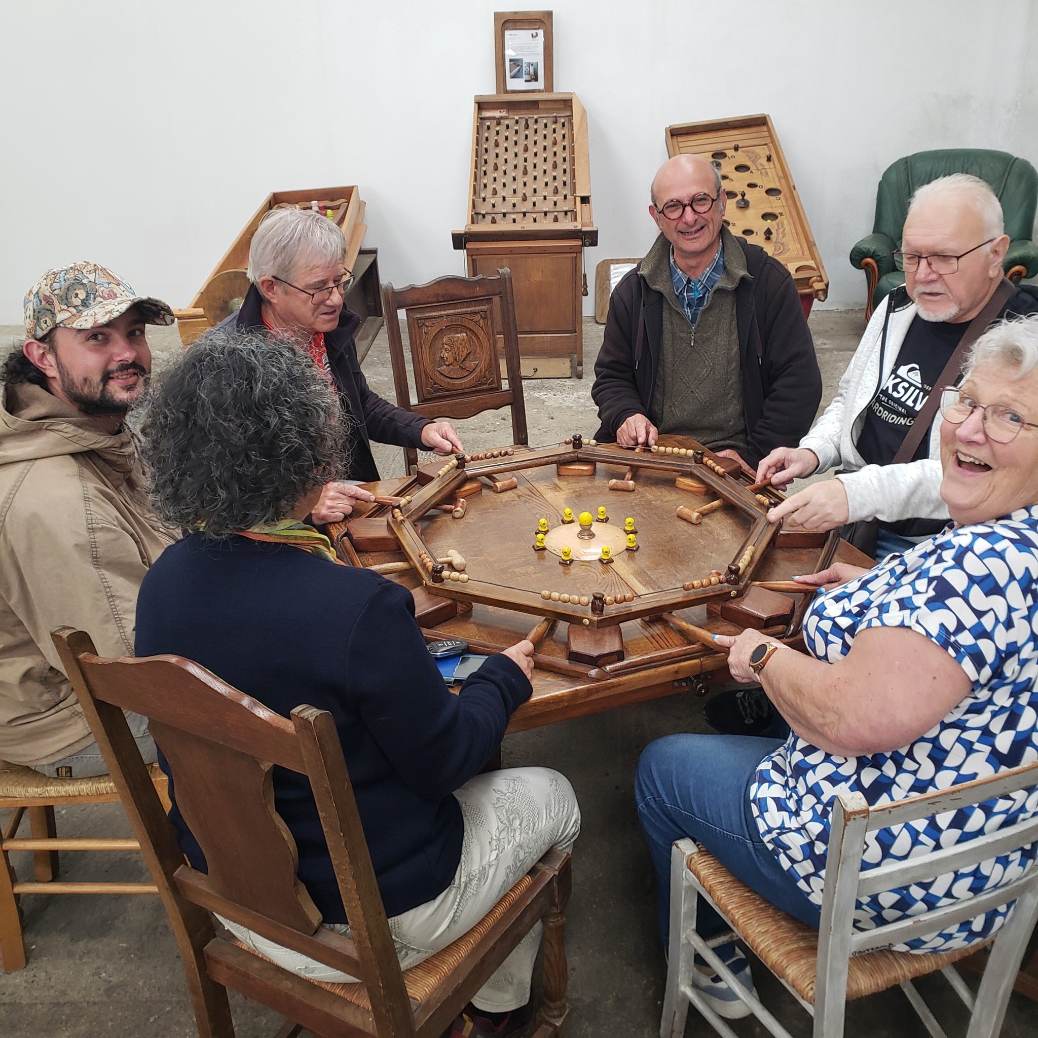 Venez découvrir ou re-découvrir les jeux d'adresse, de lancer, de coopération, de stratégie et tant d'autres. Fabriqués à partir de meubles anciens recyclés, chacun de ces jeux est unique et tout aussi ingénieux que drôle. De la catapulte à doudous au lit roulant, de 3 à 103 ans, chacun y trouvera son bonheur.